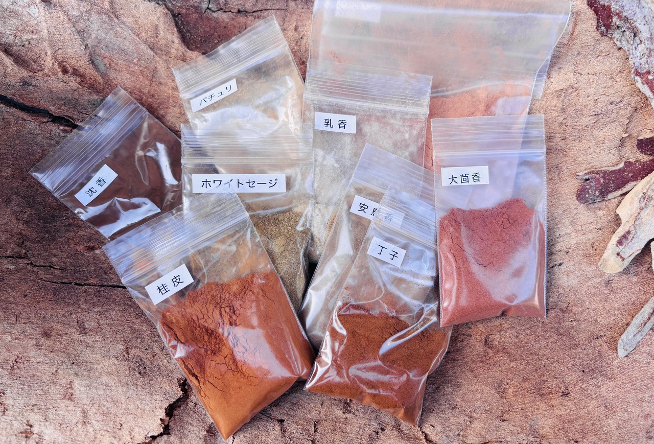 お香作りの道具をお持ちの方に向けて、香料とタブ粉のみの販売をいたします。